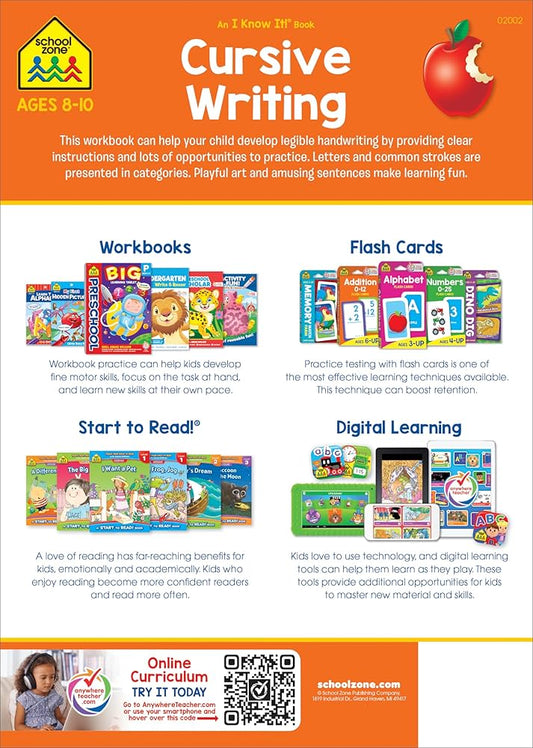 School Zone - Cursive Writing Workbook - 32 Pages, Ages 8 To 10